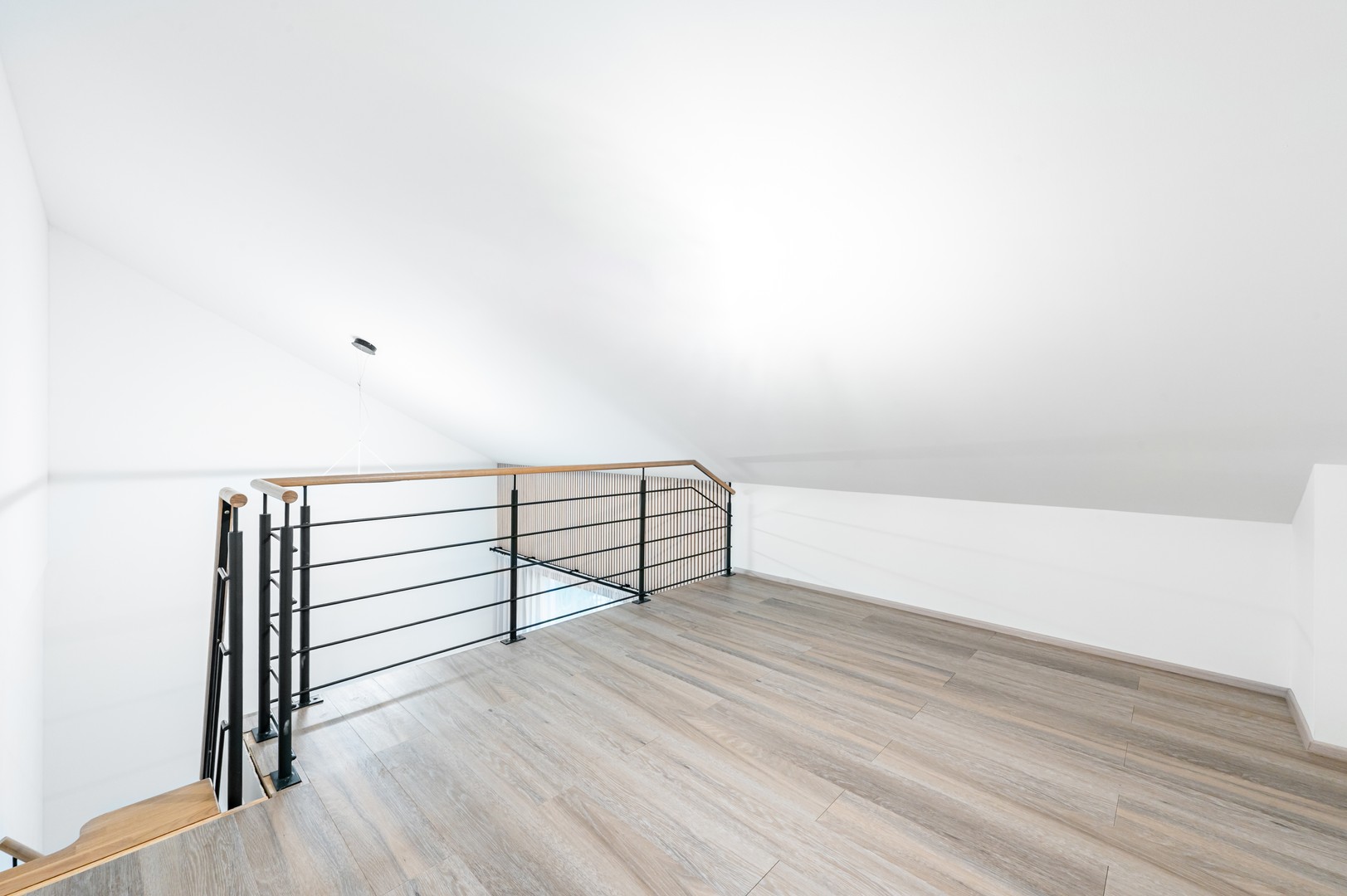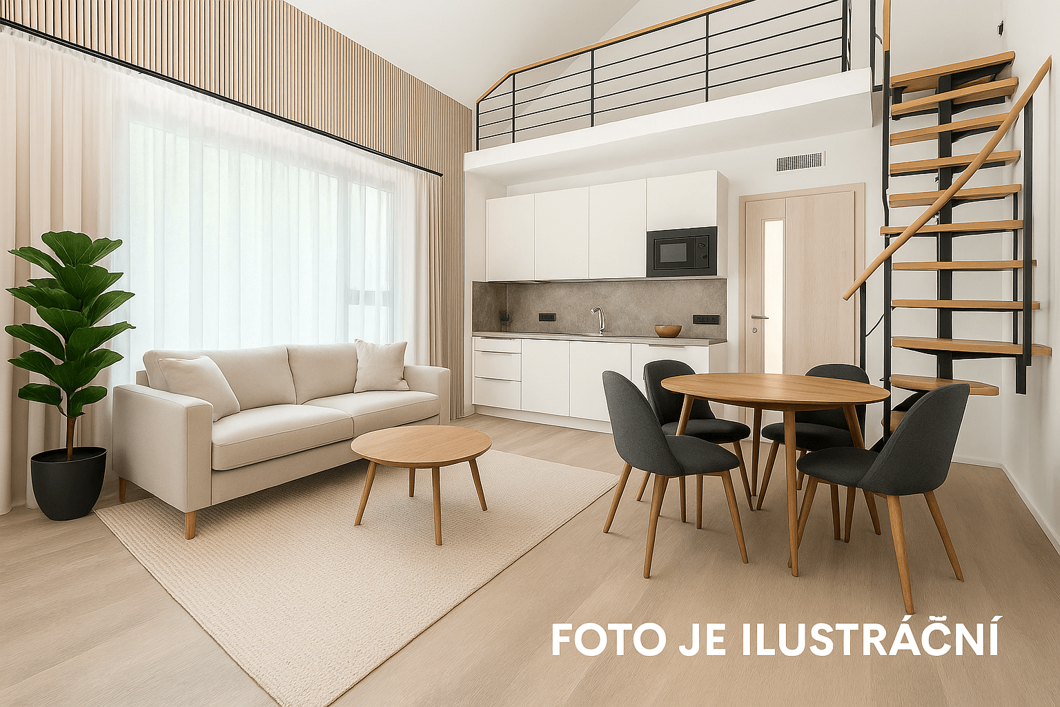 Byt je orientován do klidné části. Jednotka disponuje v dolním patře prostorným obývacím pokojem, vybaveným novou značkovou nadstandardní vestavěnou kuchyňskou linkou včetně kvalitních spotřebičů a samostatnou neprůchozí ložnicí v horním patře. Koupelna má sprchový kout, pračku a je spojená s WC. Předsíň nabízí instalovanou šatní skříň. Byt se pronajímá částečně zařízený. V bytě je položena vinylová podlaha, předností jsou též kvalitní okna (izolační trojskla) a bezpečnostní dveře. Zdroj tepla je zajištěn tepelným čerpadlem, byty jsou vybaveny rekuperací vzduchu a vodním podlahovým topením (s doplňkovou funkcí chlazení).