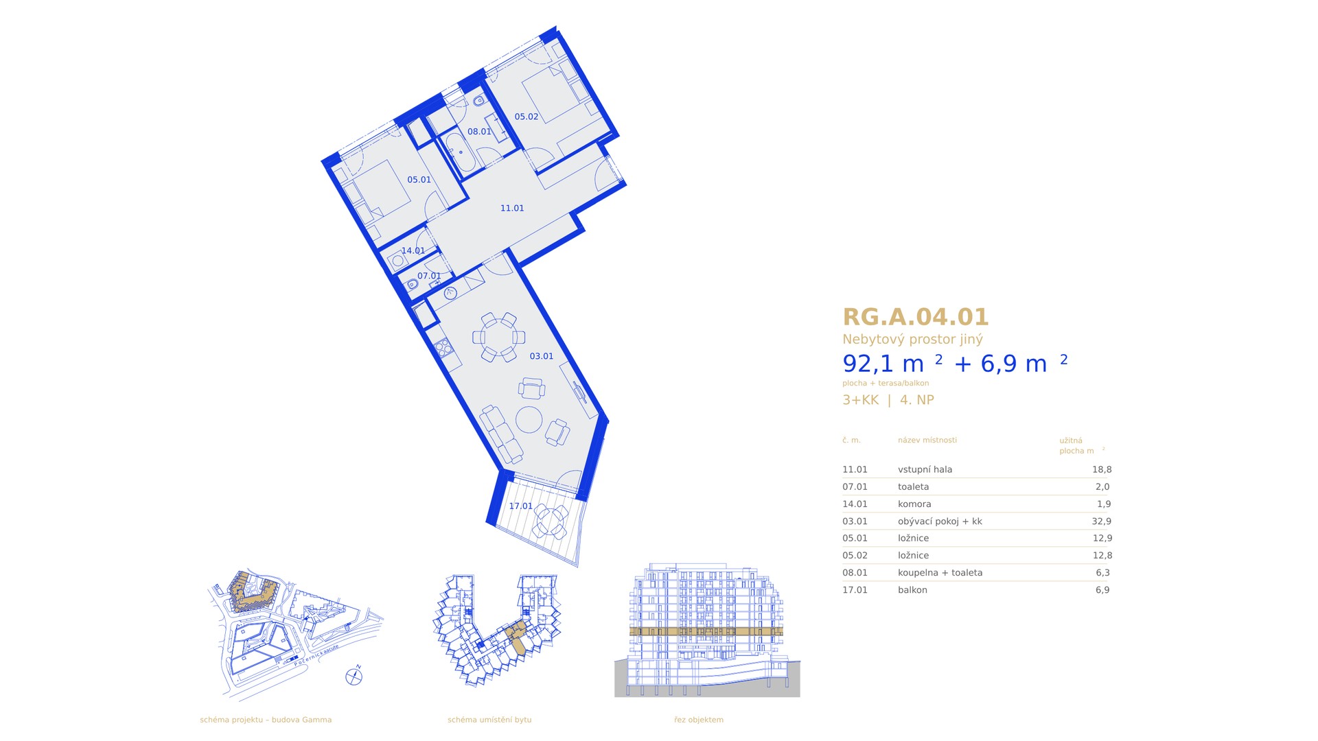 Апартамент 3+kk, 92.1 m2