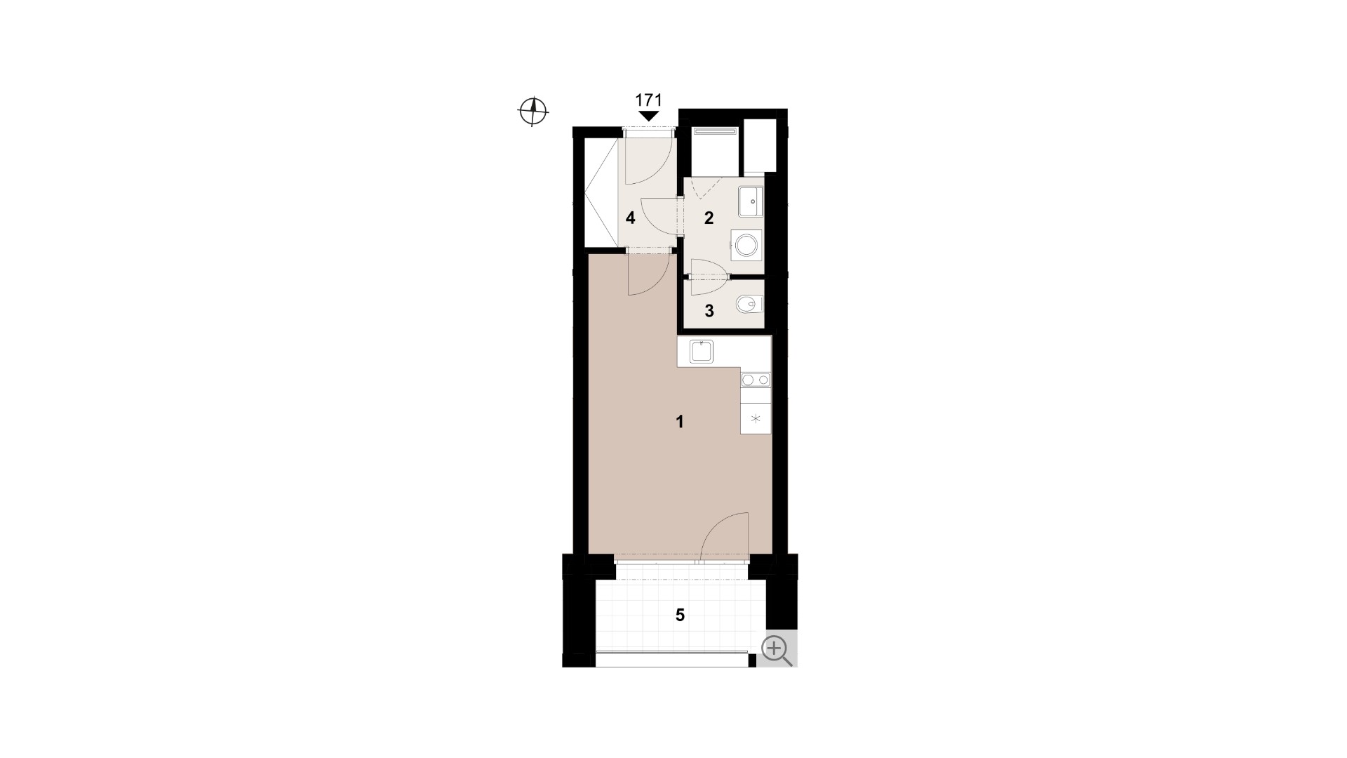 Апартамент 1+kk, 30.7 m2