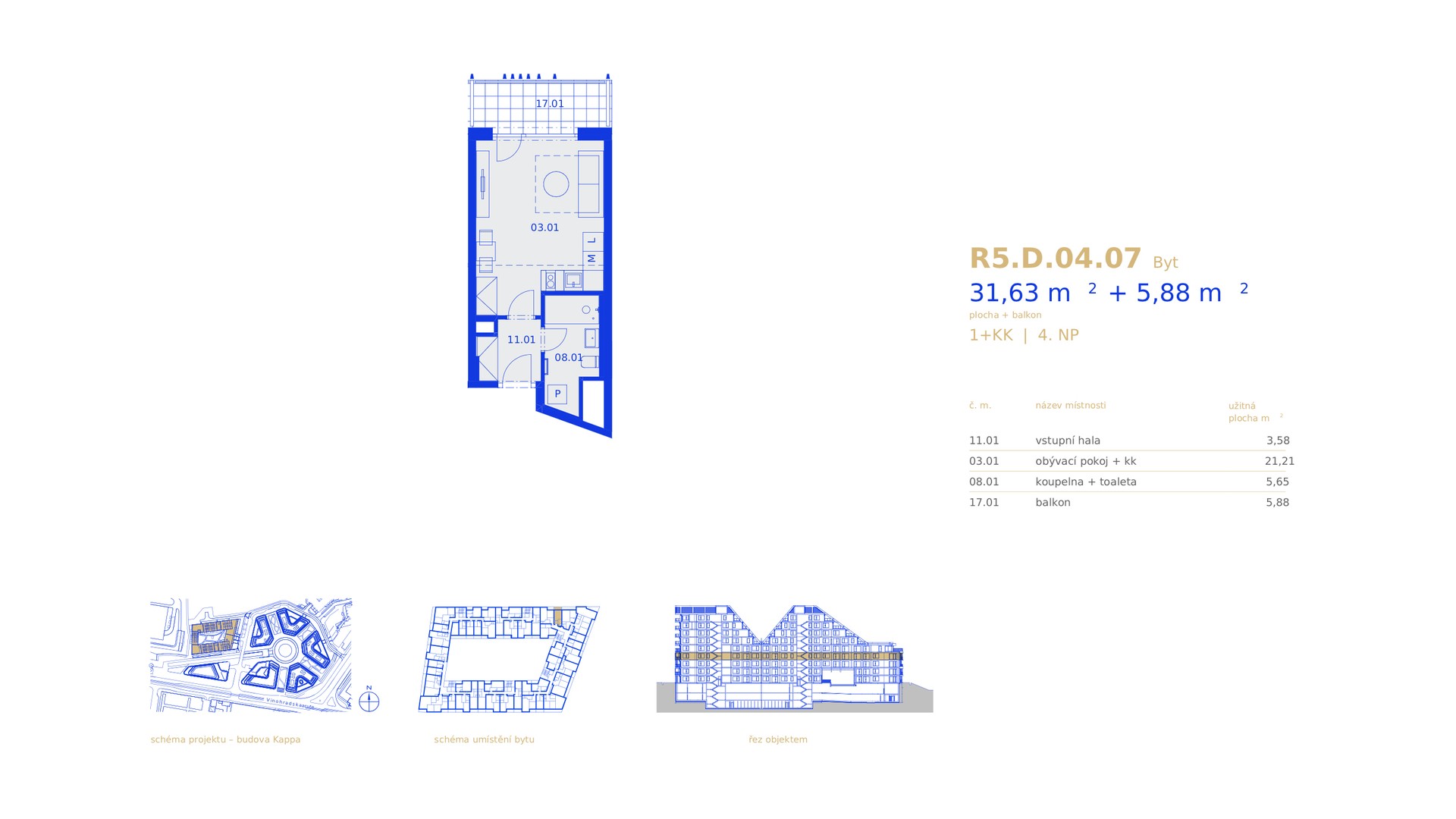 Квартира 1+kk, 31.6 m2