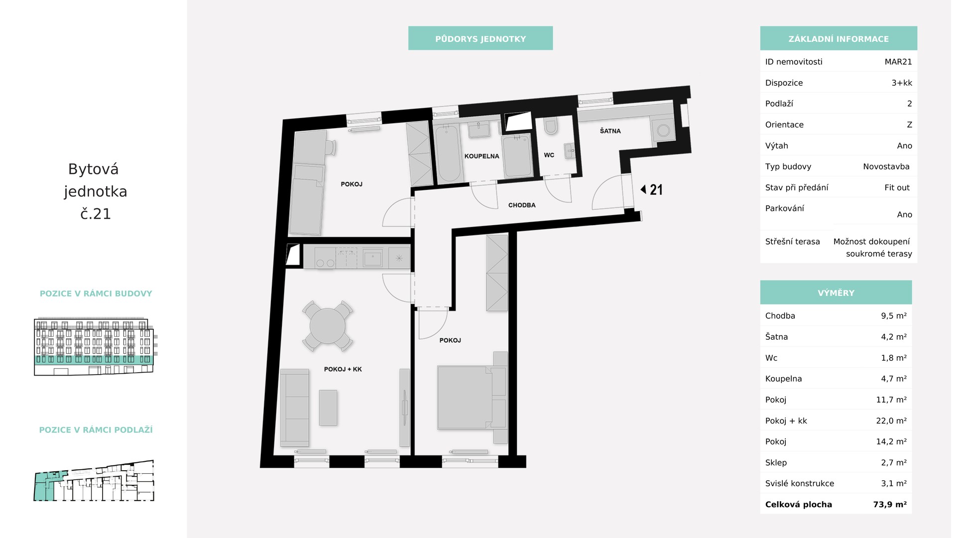 Квартира 3+kk, 73.9 m2
