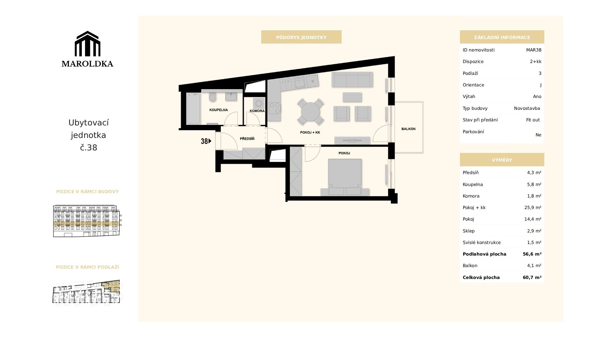 Квартира 2+kk, 60.7 m2